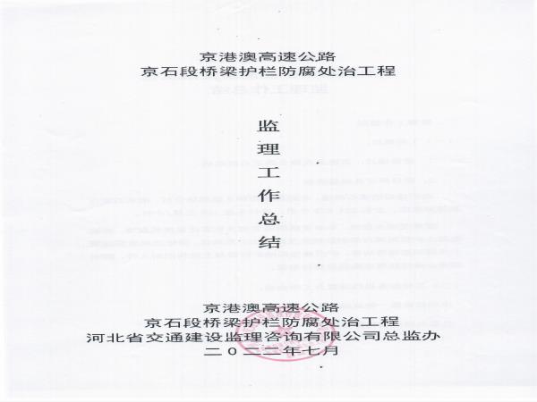 京港澳高速公路京石段2022年橋梁護欄防腐處治工程監(jiān)理報告
