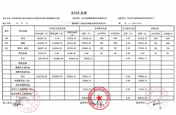 京港澳高速公路京石段南拒馬河特大橋樁基防護工程支付證書南拒馬支付證書