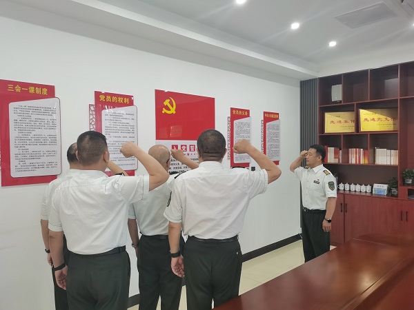“我志愿加入中國共產黨,擁護黨的綱領……”在鮮紅的黨旗下,徐水站黨支部為支部黨員舉辦“迎七一”政治生日儀式。全體黨員重溫入黨誓詞,支部書記向過政治生日的黨員發(fā)放“政治生日學習教育書籍”。