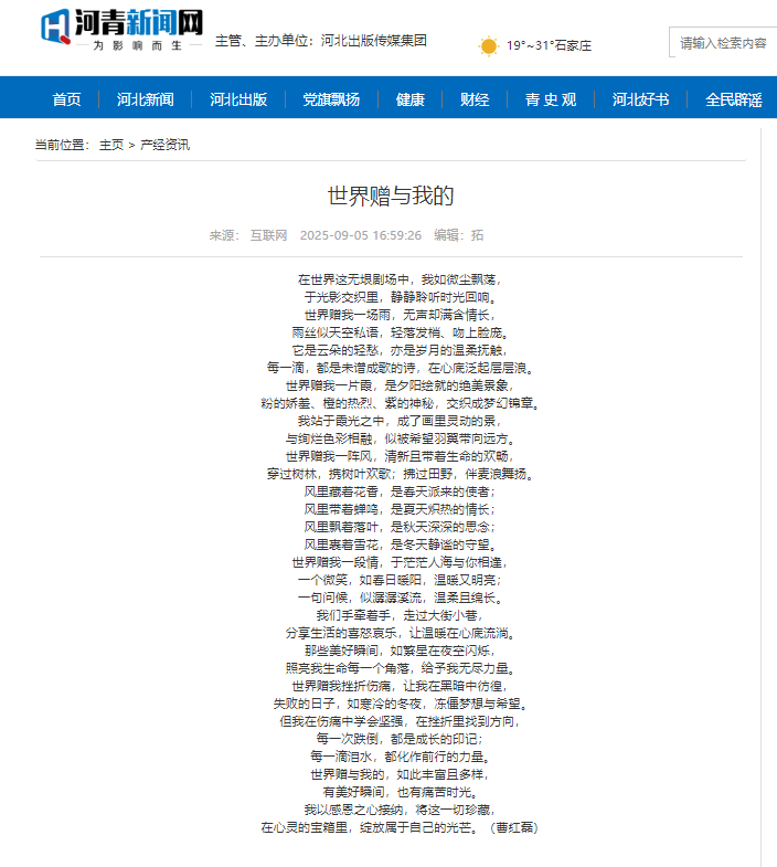 【河青新聞網(wǎng)】世界贈(zèng)與我的