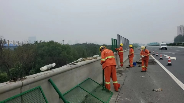 養(yǎng)護人員分組、分區(qū)段、分項目對轄段內(nèi)沿線標(biāo)志標(biāo)牌、交通標(biāo)線、護欄、聲屏障及防眩設(shè)施等交安設(shè)施進行了勘查,并且對收費站引線、橋梁被交道的交安設(shè)施進行了全面檢查。對于沿線護欄板防阻塊變形或缺失、螺栓及墊片缺失、搭接不規(guī)范等重點問題加大排查整改力度,及時修復(fù)中央帶防眩網(wǎng),緊固標(biāo)志標(biāo)牌的螺絲、螺栓,清洗擦拭臟污的標(biāo)志標(biāo)牌,及時補充粘貼反光標(biāo)志,確保交安設(shè)施清晰、醒目。