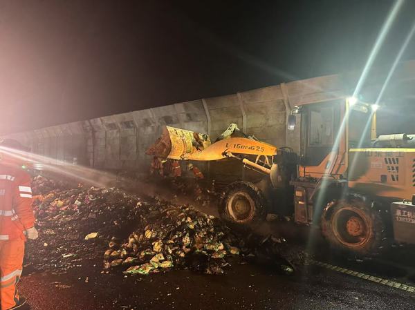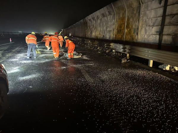 現(xiàn)場(chǎng)作業(yè)人員爭(zhēng)分奪秒地對(duì)事故現(xiàn)場(chǎng)進(jìn)行清理和救援。清障救援隊(duì)利用專業(yè)設(shè)備,將受損車輛快速拖離現(xiàn)場(chǎng),工區(qū)作業(yè)人員利用大型機(jī)械清理路面上的散落物,同時(shí)為防止路面結(jié)冰,在清理后的事故路段撒布了融雪劑。經(jīng)過近三個(gè)小時(shí)緊張有序的奮戰(zhàn),事故現(xiàn)場(chǎng)的散落物終于被清理干凈,路面恢復(fù)了正常通行。