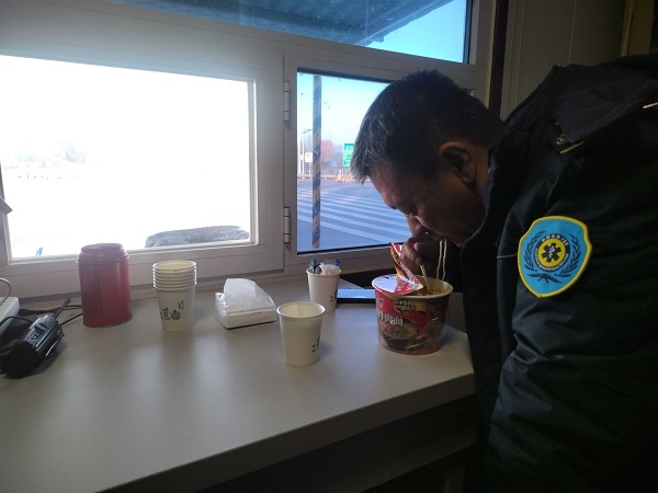天氣寒冷,工作人員將司機(jī)請到便民服務(wù)站休息,為他遞上了一杯熱水,在得知他還沒吃早飯后又給他端來熱騰騰的泡面,司機(jī)吃著面,緊張的情緒也得到了緩解。不久,維修人員趕到現(xiàn)場,很快查明了故障原因并進(jìn)行了快速修復(fù)??粗匦聠?dòng)的救護(hù)車,司機(jī)師傅緊握工作人員的雙手,連聲道謝:“太感謝你們了!要不是你們幫忙,不知道要耽誤多久,萬一有緊急任務(wù)就麻煩了!”