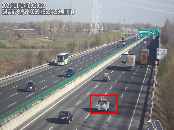 9時40分,第一養(yǎng)護工區(qū)工作人員抵達事發(fā)地點,迅速開展應急清理作業(yè):工作人員規(guī)范設置安全警示區(qū)域后,快速將散落的金屬梯子拖移至應急車道,隨后高效完成路面清理及安全隱患排查,確保道路通行條件全面恢復。與此同時,溯源調(diào)查工作也在緊鑼密鼓推進。因掉落障礙物處于監(jiān)控攝像頭盲區(qū),無法直接捕捉到具體掉落車輛,監(jiān)控員及時轉(zhuǎn)變排查思路,通過調(diào)取沿線監(jiān)控視頻,重點篩查載有金屬梯子的貨車軌跡,并逐一對比障礙物出現(xiàn)前后的鏡頭畫面,核查貨車裝載情況。經(jīng)過半小時的細致篩查與精準比對,監(jiān)控員在K69+955路段監(jiān)控鏡頭下發(fā)現(xiàn)一輛藍牌小貨車,其車廂內(nèi)明確載有同款金屬梯子;而在K69+005路段的后續(xù)監(jiān)控畫面中,該貨車車廂內(nèi)的梯子已消失不見。據(jù)此,成功鎖定車牌號為冀FZXXXX的嫌疑車輛,并迅速整合車輛通行軌跡、全程監(jiān)控視頻、現(xiàn)場處置照片等關鍵證據(jù),構(gòu)建形成完整閉環(huán)的證據(jù)鏈,第一時間反饋至高速交警涿州大隊。交警部門隨即對責任車輛駕駛?cè)碎_展交通安全警示教育,壓實安全主體責任。