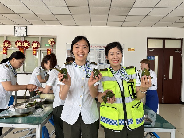 大鍋被這千姿百態(tài)的粽子堆滿了,這份沉甸甸的“滿”,像極了大家心中膨脹的情感,這層層疊疊的粽葉包裹著的是我們對工作順?biāo)斓钠诩?,對司乘平安的祝福、對佳?jié)圓滿的愿望,就讓這粽葉飄香,越過崗?fù)ぃ刈o(hù)每一位司乘,為其保駕護(hù)航。