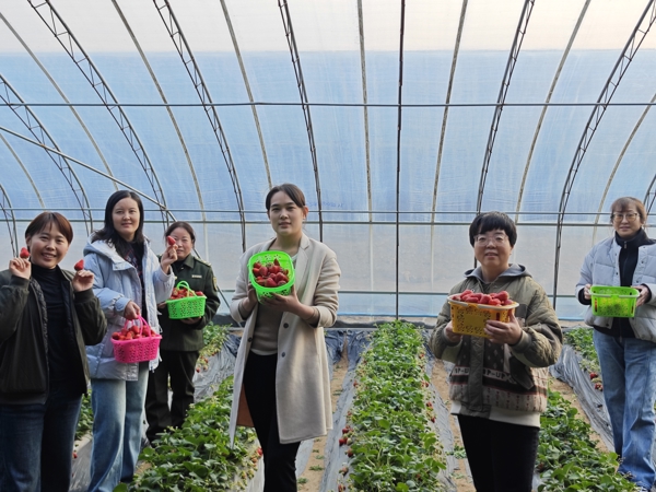 走進(jìn)草莓園,女職工們?nèi)宄扇?,提籃執(zhí)剪,在翠葉紅果間尋覓春日饋贈(zèng)?;顒?dòng)現(xiàn)場(chǎng)架起文旅短視頻拍攝專區(qū),鏡頭記錄下她們俯身采摘的專注側(cè)影、發(fā)現(xiàn)飽滿果實(shí)時(shí)綻放的笑靨,以及竹籃漸滿時(shí)高舉成果的雀躍身影。紅莓映襯巾幗風(fēng)采,光影交織中,采摘野趣與高速沿線的田園風(fēng)光被剪輯成短旅推介視頻,通過(guò)企業(yè)抖音號(hào)“京石嬌顏有點(diǎn)甜”快速推送,吸引周邊群眾“跟著高速去采摘”,助農(nóng)便民,引流增收。
