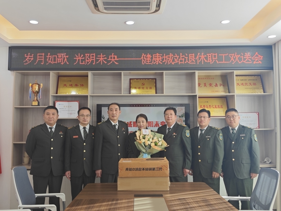為弘揚(yáng)愛崗敬業(yè)精神,傳遞組織關(guān)懷溫暖,3月19日下午,健康城站為退休職工白林華舉行歡送會(huì)。站領(lǐng)導(dǎo)班子、職工代表與退休同志齊聚一堂,以簡(jiǎn)樸莊重的形式致敬數(shù)十載崗位堅(jiān)守,激勵(lì)新時(shí)代使命傳承。