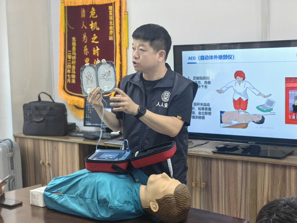 講座特邀安全健康教育網(wǎng)河北站宣教科科長解云龍擔綱主講。不同于傳統(tǒng)講座的單向輸出,解科長將智能教具與情景模擬深度融合,打造沉浸式學習場景?,F(xiàn)場救護與AED使用方法教學環(huán)節(jié)將講座推向高潮。解科長利用專業(yè)模擬人教具和自動體外除顫器(AED)設備,通過“理論講解+分步演示+實操訓練”三位一體的教學模式,詳細介紹心肺復蘇的操作流程與關鍵要點。他強調,在心臟驟停的黃金四分鐘內,及時有效的心肺復蘇和AED使用是挽救生命的關鍵。職工們分組進行實踐操作,解科長逐一指導,糾正按壓深度、頻率及AED電極片粘貼位置等細節(jié)問題,確保每個人都能熟練掌握這兩項“救命技能”?!耙郧坝X得急救很復雜,今天親身體驗后,心里更有底氣了,以后遇到突發(fā)情況也知道該怎么做了。”一位參與實操的職工感慨道。