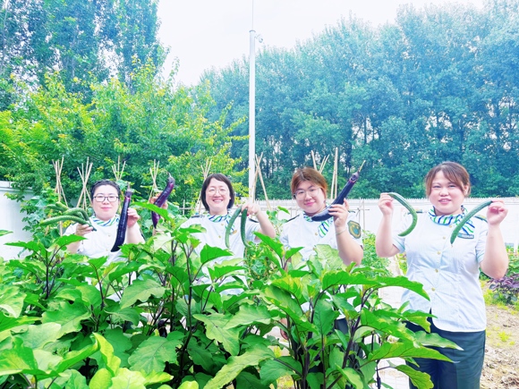 豐收時(shí)節(jié),職工們簇?fù)碓诓藞@里,目光掃過(guò)每一株蔬果,眼里滿是藏不住的驚喜與自豪。紫瑩瑩的茄子像倒掛的燈籠,沉甸甸地墜在枝頭;紅彤彤的西紅柿圓潤(rùn)飽滿,在綠葉間探出腦袋,像一個(gè)個(gè)害羞的小姑娘;翠綠的黃瓜頂著嫩黃的花,掛滿了藤蔓;小蔥挺直了腰桿,辣椒則像一串串小鞭炮,整個(gè)菜園一派生機(jī)勃勃的景象。職工劉營(yíng)踮起腳尖摘下一根頂花帶刺的黃瓜,用袖子擦了擦就咬了一口,清脆的“咔嚓”聲里,她笑道:“這可是咱們親手侍弄的,比買(mǎi)的還脆甜!”