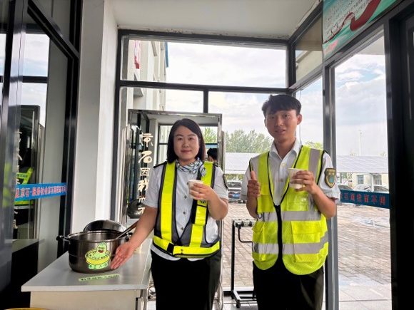 除了發(fā)放防暑物資,定興站食堂也積極行動起來,為員工們準備了清涼解暑的綠豆湯和清甜可口的西瓜。在高溫環(huán)境下工作后,喝上一碗綠豆湯,吃上一塊西瓜,瞬間驅散了暑氣,讓員工們倍感舒適。同時,為應對可能出現的中暑情況,工會還購買了藿香正氣水等防暑藥品,放置在各工作場所,方便員工隨時取用。