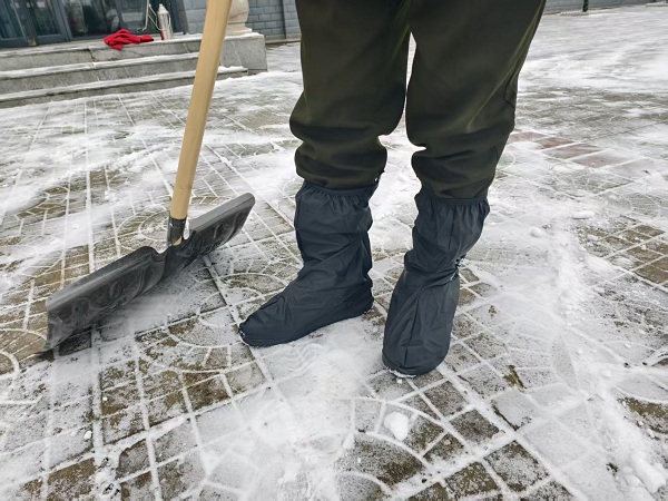 此次采購的鞋套兼具防水、防滑、耐磨特性,能夠有效應對積雪、結(jié)冰路面,避免員工在戶外作業(yè)時滑倒受傷。發(fā)放現(xiàn)場,分工會工作人員有序組織,員工們領(lǐng)到鞋套后紛紛當場換上,隨即投身到車道除雪保暢工作中。皚皚白雪里,身著反光背心、腳踩防水鞋套的員工們手持鐵鍬、雪推板,分工協(xié)作、干勁十足,全力清掃車道內(nèi)的積雪。防滑鞋套讓大家在濕滑的路面上行動自如,大大提升了除雪效率,原本被積雪覆蓋的車道很快便恢復了暢通。