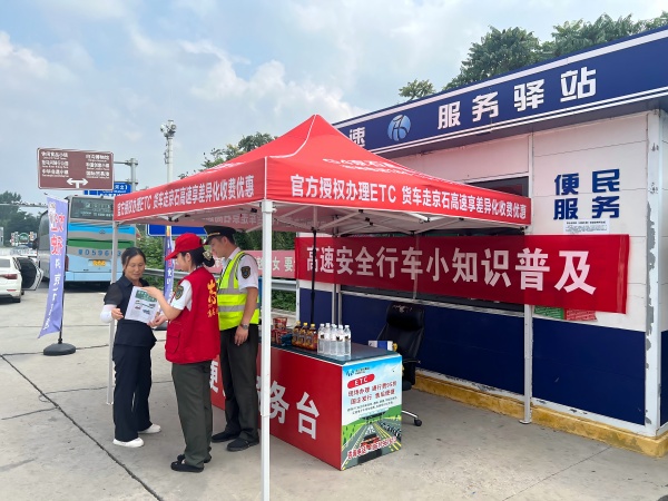 活動現(xiàn)場,定興站工作人員在站口設(shè)置了醒目且溫馨的宣傳臺和咨詢點(diǎn)。在炎熱的夏季為過往的司乘人員準(zhǔn)備了礦泉水、濕巾等防暑用品??紤]到夏季高溫天氣對高速行車的影響,工作人員著重開展了夏季高速安全行車小知識普及活動。從車輛輪胎的保養(yǎng)、發(fā)動機(jī)的散熱,到高溫天氣下駕駛員的疲勞預(yù)防等方面耐心細(xì)致地為司乘人員講解,提醒他們注意夏季行車的安全隱患。