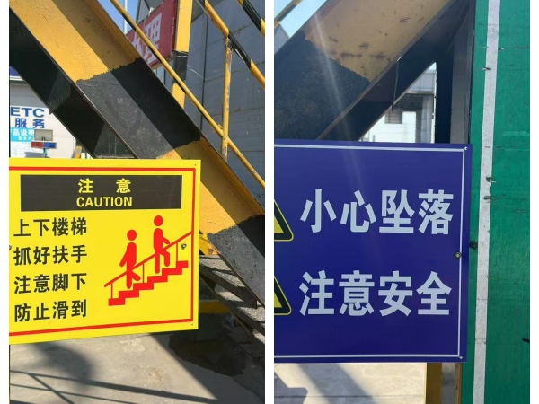 為切實消除安全隱患,保定南收費(fèi)站對站內(nèi)所有重點(diǎn)區(qū)域進(jìn)行全面排查,精準(zhǔn)劃定安全管理邊界。在收費(fèi)車道、廣場、設(shè)備區(qū)、員工通道等關(guān)鍵位置,統(tǒng)一更新了一批清晰、耐久的安全警示標(biāo)識和提示牌,內(nèi)容涵蓋最大承載限制、禁止超載、禁止煙火、小心地滑等警示語,以及應(yīng)急聯(lián)系方式和風(fēng)險提示。標(biāo)注作業(yè)區(qū)域范圍,規(guī)范收費(fèi)現(xiàn)場操作;通過視覺化的標(biāo)識引導(dǎo),讓“安全規(guī)則”一目了然,時刻提醒全員繃緊安全之弦。