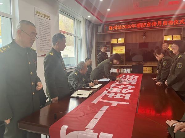 舉行啟動儀式,吹響消防“集結(jié)號”。涿州站高度重視,隆重舉行消防宣傳月活動啟動儀式。儀式上,站長發(fā)表動員講話,明確活動意義與要求,全體人員在條幅上鄭重簽名承諾,正式拉開了消防宣傳月系列活動的序幕,營造了“人人參與消防、共筑平安站區(qū)”的積極氛圍。