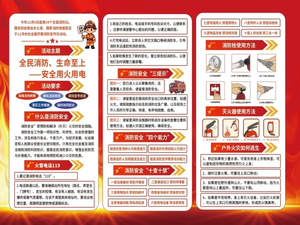 消防安全是單位與家庭安全的重要基石,為切實提升全員消防知識儲備,推動消防安全保障從單位延伸至家庭,智慧調(diào)度中心近日多措并舉,通過精心制作消防知識宣傳手冊、采購適配家庭場景的應(yīng)急消防器材,全方位織密消防安全防護網(wǎng)。